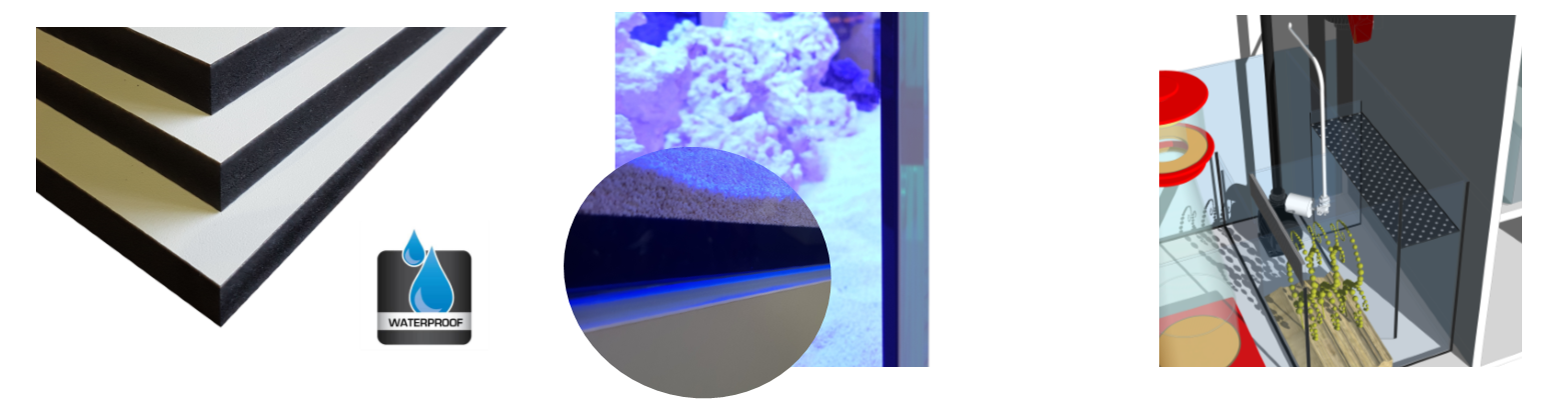 Een overloop is belangrijk om het water naar het filtersysteem te leiden en ook weer terug in het aquarium te pompen. Daarbij hebben we een compacte overloop ontworpen in zwart glas en voorzien van een ingenieus verticaal afzuigsysteem inclusief afdekplaat zodat vissen er niet in kunnen.