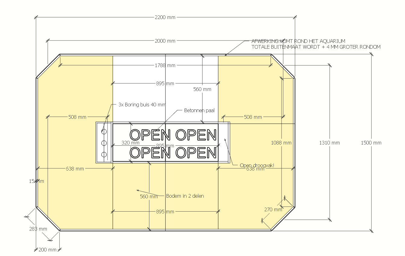 Panorama Aquarium 220x150x 75 cm volgens onderstaande tekening